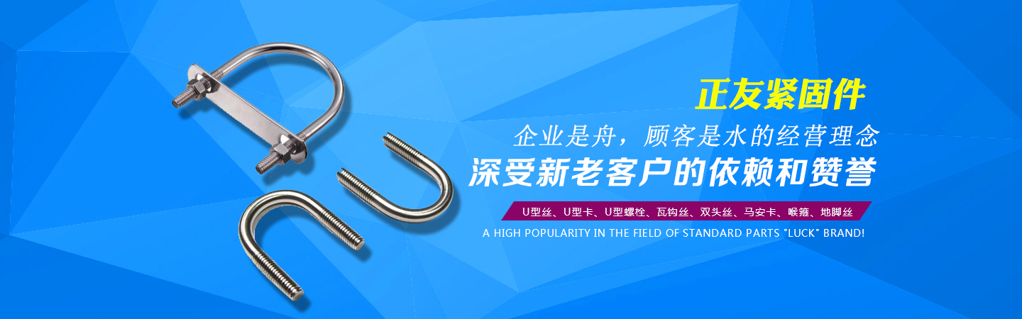 河北正友緊固件制造有限公司(原永年縣河北鋪天緣緊固件廠)坐落在永年縣河北鋪工業(yè)區(qū),地理位置優(yōu)越,交通便利。自1994年建廠至今,在各界人士的關(guān)懷和新老客戶的擁護及全廠員工的努力下,企業(yè)日益發(fā)展壯大,產(chǎn)品不斷更新,以U型絲、U型卡、U型螺栓、瓦鉤絲、雙頭絲、馬安卡、喉箍、地腳絲等產(chǎn)品的過硬質(zhì)量,創(chuàng)下在標準件領(lǐng)域知名度較高的“正友”品牌! 為答謝新老客戶長期以來對我廠的幫助與信任,我廠在提高質(zhì)量的同時,更是加強了產(chǎn)品售后服務(wù)的力度!以“企業(yè)是舟,顧客是水”的經(jīng)營理念,鑄就“正友”日后的輝煌之路!